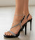 Il design con applicazioni gioiello brillanti valorizza il piede, mentre il plateau anteriore riduce l’inclinazione del piede rendendo il tacco più stabile e comodo da indossare per ore.