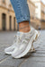 Sneakers con platform alto, colore beige ideali per passeggiare tutto il giorno in totale comfort.