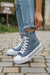 Sneakers con platform alto, colore jeans con strass ideali per passeggiare tutto il giorno in totale comfort.